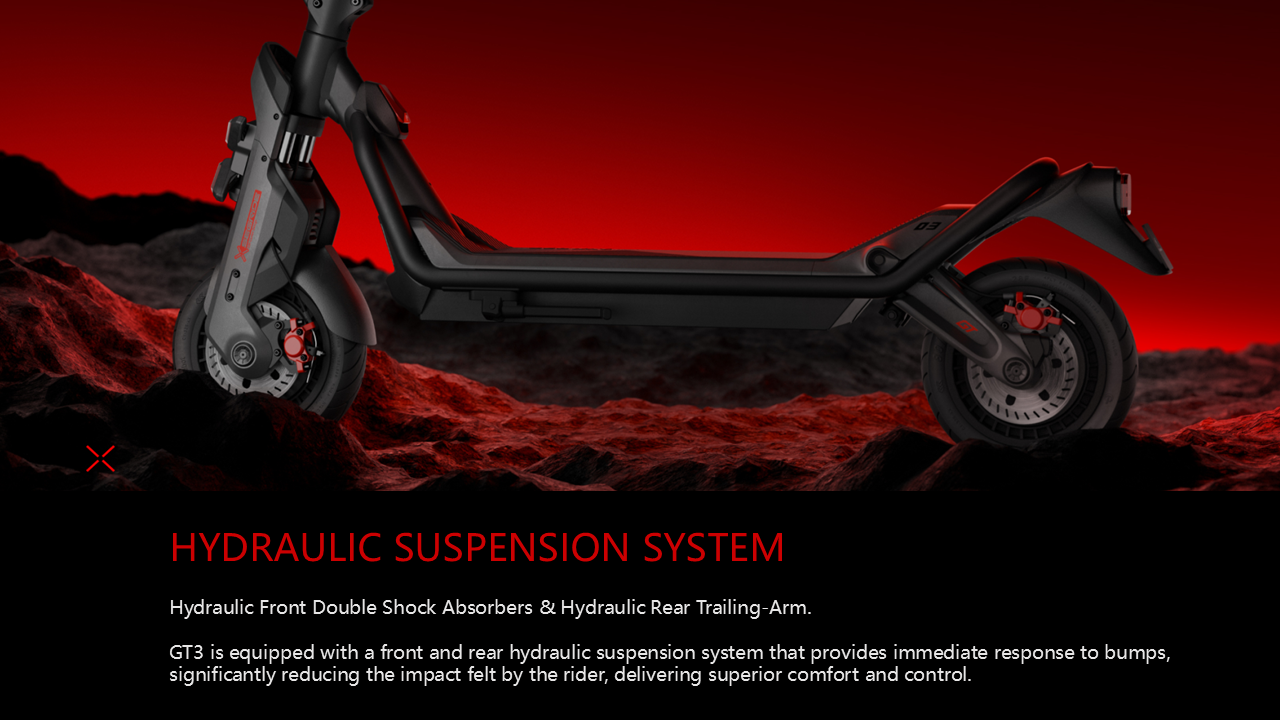 • Suspension: Front Double Hydraulic + Rear Hydraulic